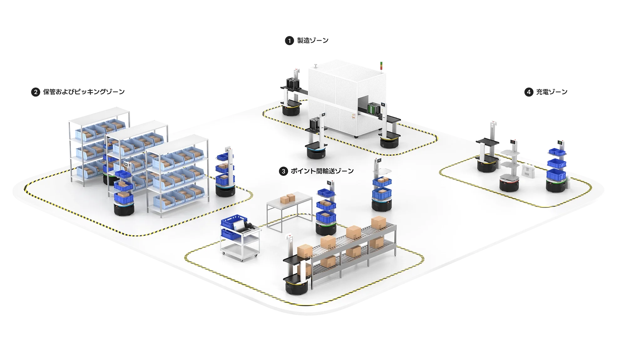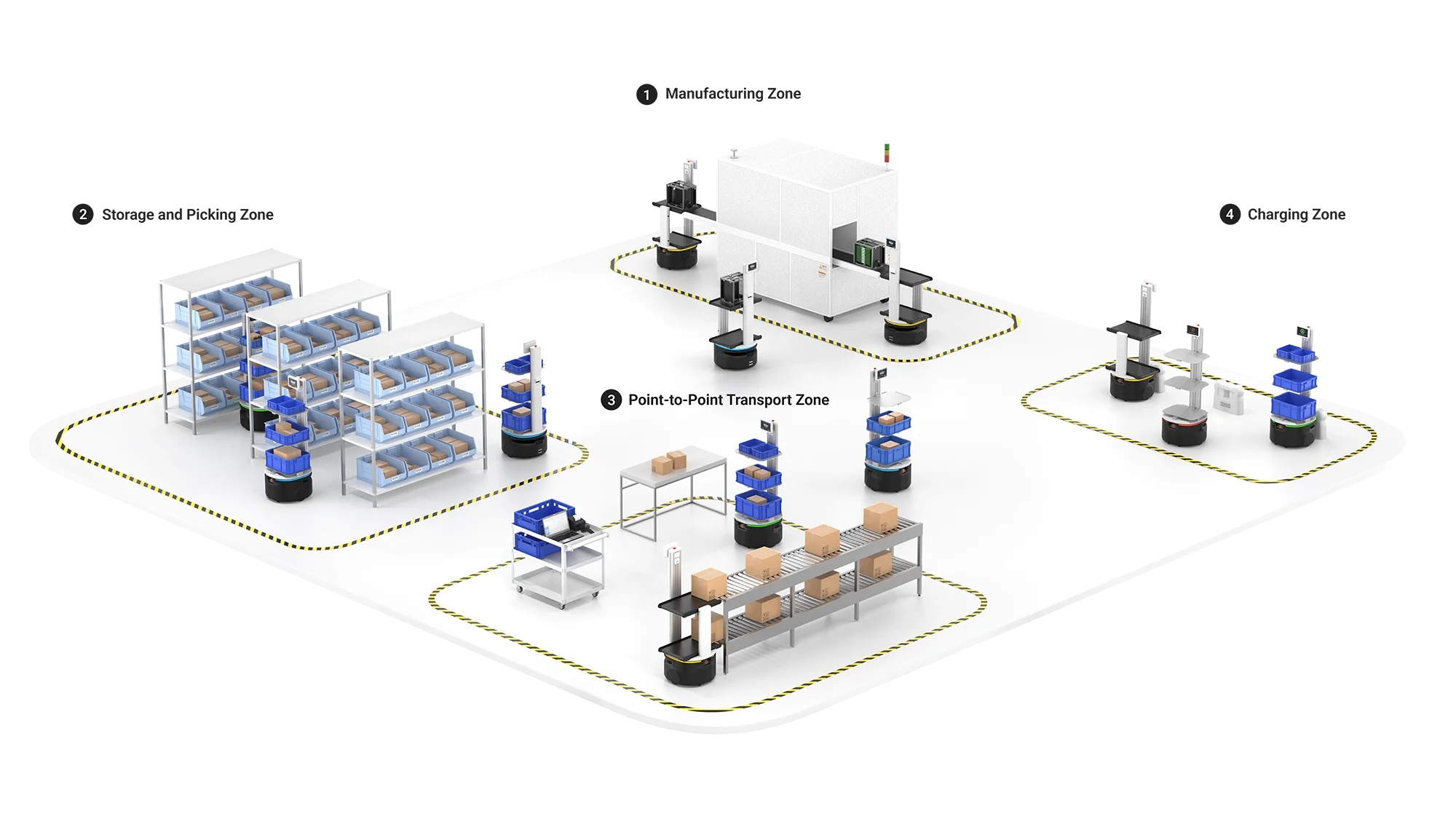 Automasi AMR tidak pernah kelihatan begitu cekap. Carti dioptimumkan untuk berfungsi dalam pelbagai persekitaran, termasuk brownfield, greenfield, multi-level, mezanin dan banyak lagi. Ini memastikan penyepaduan yang lancar ke dalam sebarang proses pengendalian bahan.